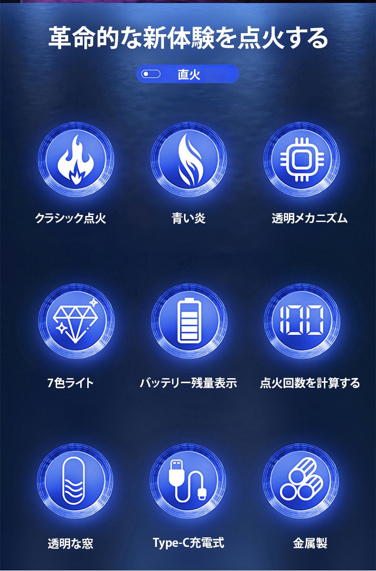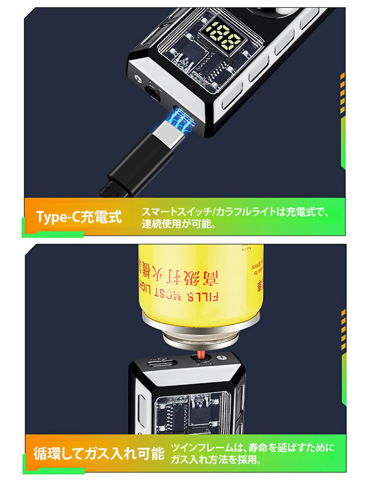成功した経営者に人気のライター、点火が強風に耐え、1回の充電で半年使用可能、LEDでバッテリー残量を表示します、
